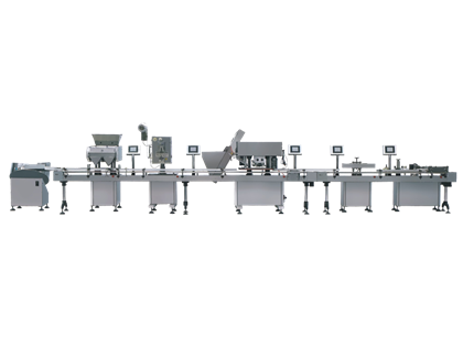 全自動(dòng)灌裝旋蓋鋁箔封口貼標(biāo)醫(yī)藥生產(chǎn)線(xiàn)