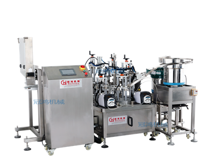 本設(shè)備是我司自主研發(fā)自動灌裝扎蓋壓蓋一體機,采用氣電一體與PLC系統(tǒng)控制,操作簡易。設(shè)備采用蠕動泵灌裝,為國內(nèi)首創(chuàng),也可以采用蠕動泵方式。獨特的插入式灌裝閥國內(nèi)獨一無二。該臺設(shè)備具有自動理瓶 有瓶灌裝、無瓶止灌 無泵頭不鎖蓋方式。該臺設(shè)備填補了國內(nèi)小口徑瓶自動化生產(chǎn)設(shè)備的空白,充分體現(xiàn)了本公司在非標(biāo)包材產(chǎn)品的設(shè)計、制造上的優(yōu)勢,設(shè)備完全符合GMP生產(chǎn)規(guī)范。廣泛用于香水、護(hù)發(fā)素、口服液、精油等產(chǎn)品。